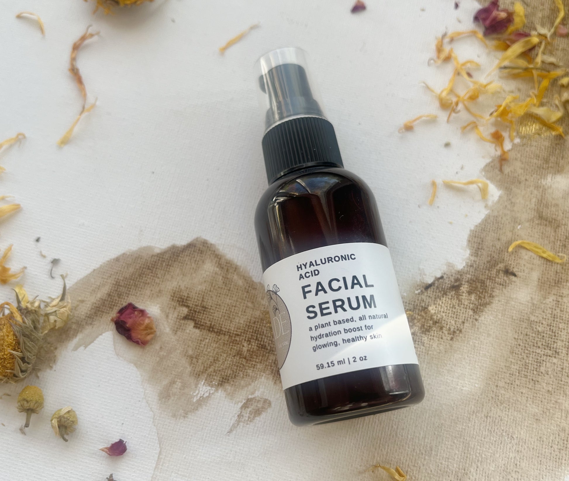 Our vegan Hyaluronic Acid Facial Serum brings moisture to the surface of your skin, helping give you a youthful, healthy glow. Hyaluronic acid is well known for its skin benefits, especially alleviating dry skin, reducing the appearance of fine lines and wrinkles and speeding up healing. Our product is an all natural, plant derived product that will compliment your all natural skincare routine.